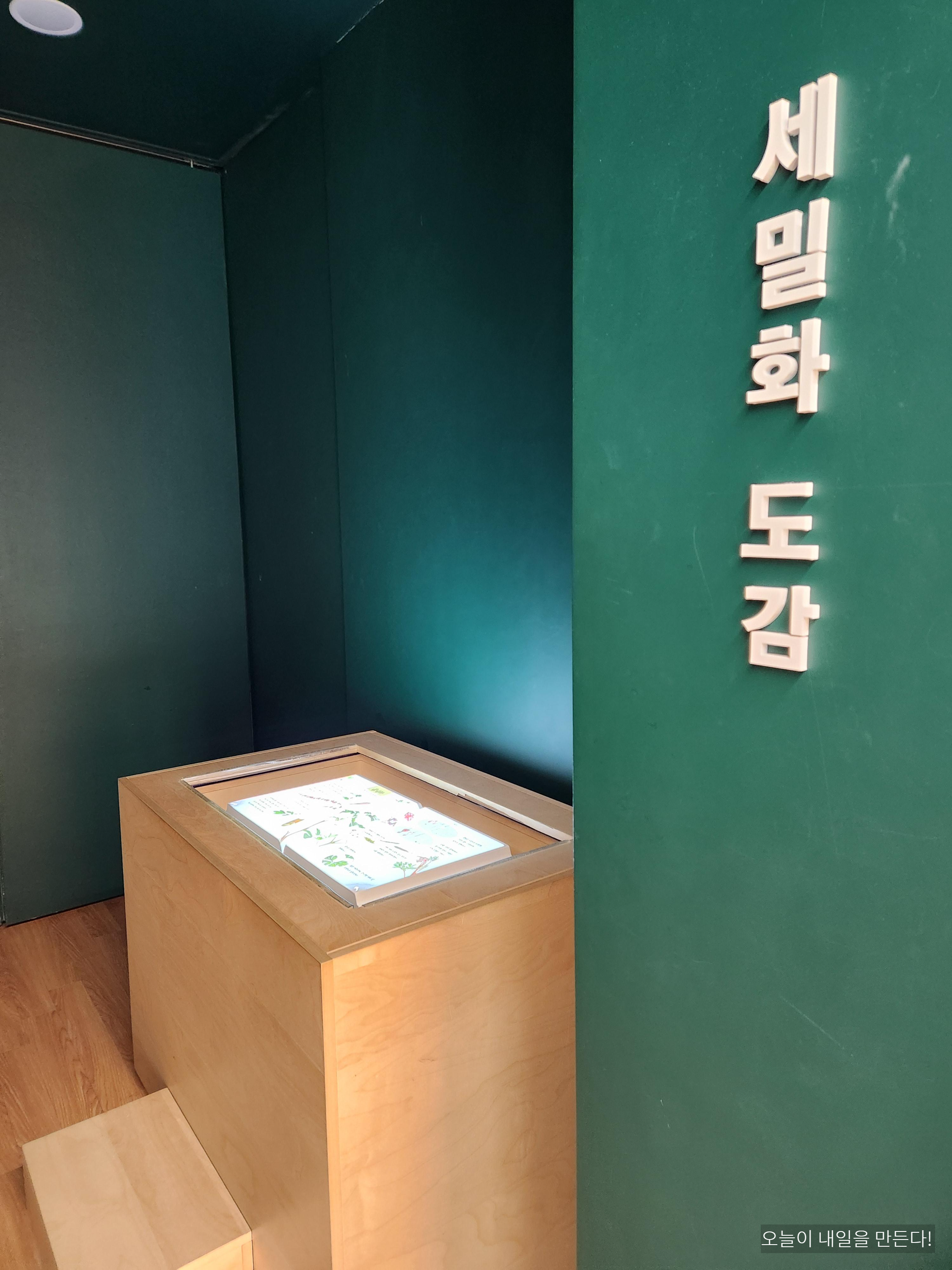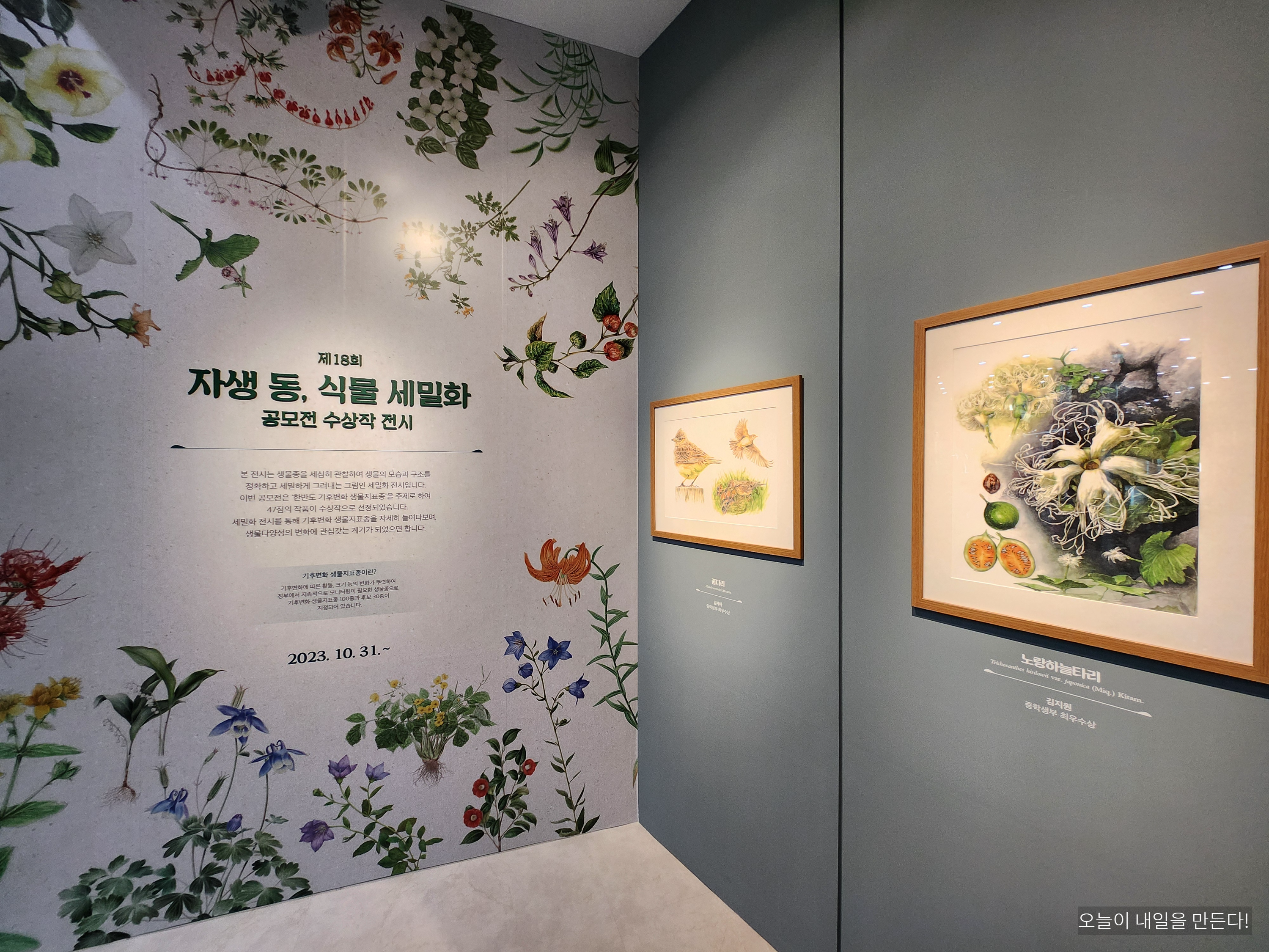 1층에서 자생 동식물 세밀화 전시를 하고 있어요.